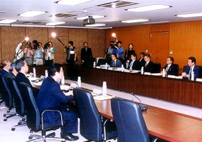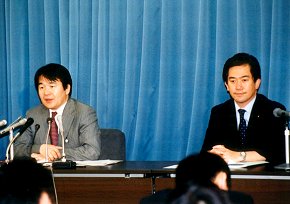 | 産業再生機構・金融庁連絡会を開催 | りそな銀行に対する資本増強の決定等について会見する竹中大臣と伊藤副大臣(6月10日) |