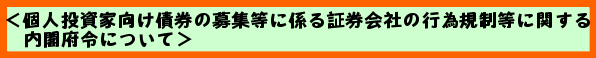 | 金融庁は、本年4月22日に、証券取引等監視委員会より個人投資家向けの有価証券の募集の取扱いや売出しを行う場合におけるルール整備について建議が行われたことを受け、証券会社の行為規制等に関する内閣府令および事務ガイドラインの一部改正を行うこととし、本年5月9日から6月10日までの間、パブリック・コメントを実施いたしました。 具体的な内容については、以下のとおりとなっています。 | |