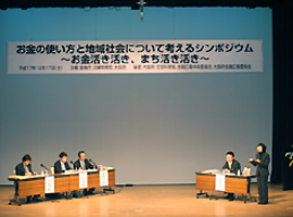 第3回は、前号に引き続き、金融庁、近畿財務局、大阪府の共催により開催した「お金の使い方と地域社会について考えるシンポジウム〜お金活き活き、まち活き活き〜」のパネルディスカッション・セッション2「市民による地域社会の活性化・地域社会に貢献する市民のお金の使い方を考える」の模様とアンケート結果について、また、平成18年1月28日(土)千葉にて、金融庁、関東財務局、千葉県の共催により開催したシンポジウムの模様の中から、櫻田内閣府副大臣の基調講演をご紹介いたします。