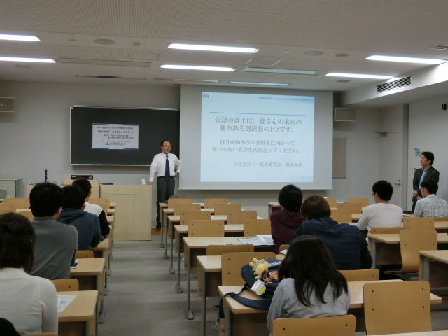 平成29年10月5日、武蔵野大学経済学部において、廣本会長が「複式簿記から公認会計士の世界へ」をテーマとして講演を行い、多数の学生の皆さまに御出席いただきました。