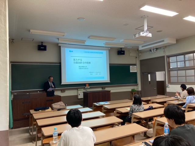 令和5年10月5日、青山学院大学において、松井会長が「拡大する公認会計士の役割」をテーマとして講演を行い、多数の学生の皆さまに御出席いただきました。