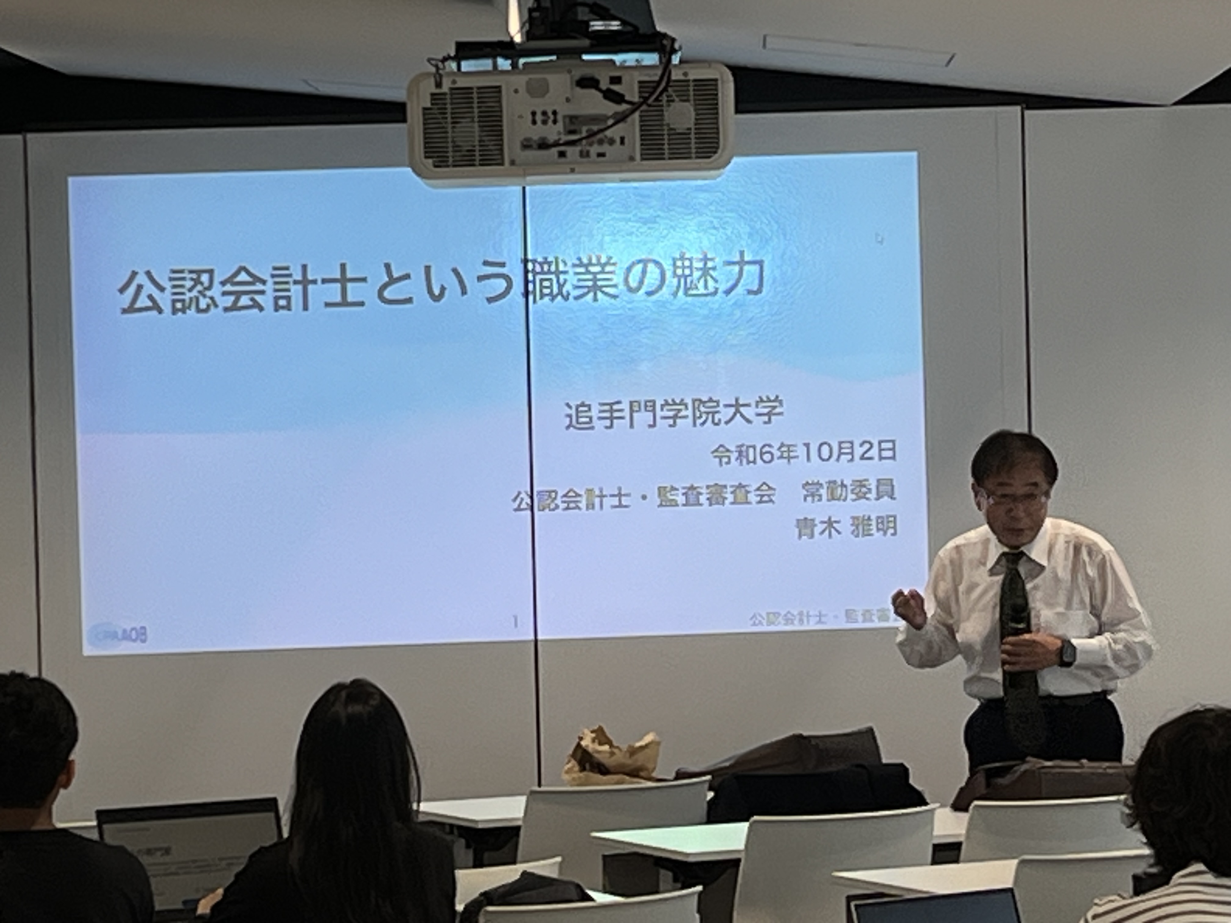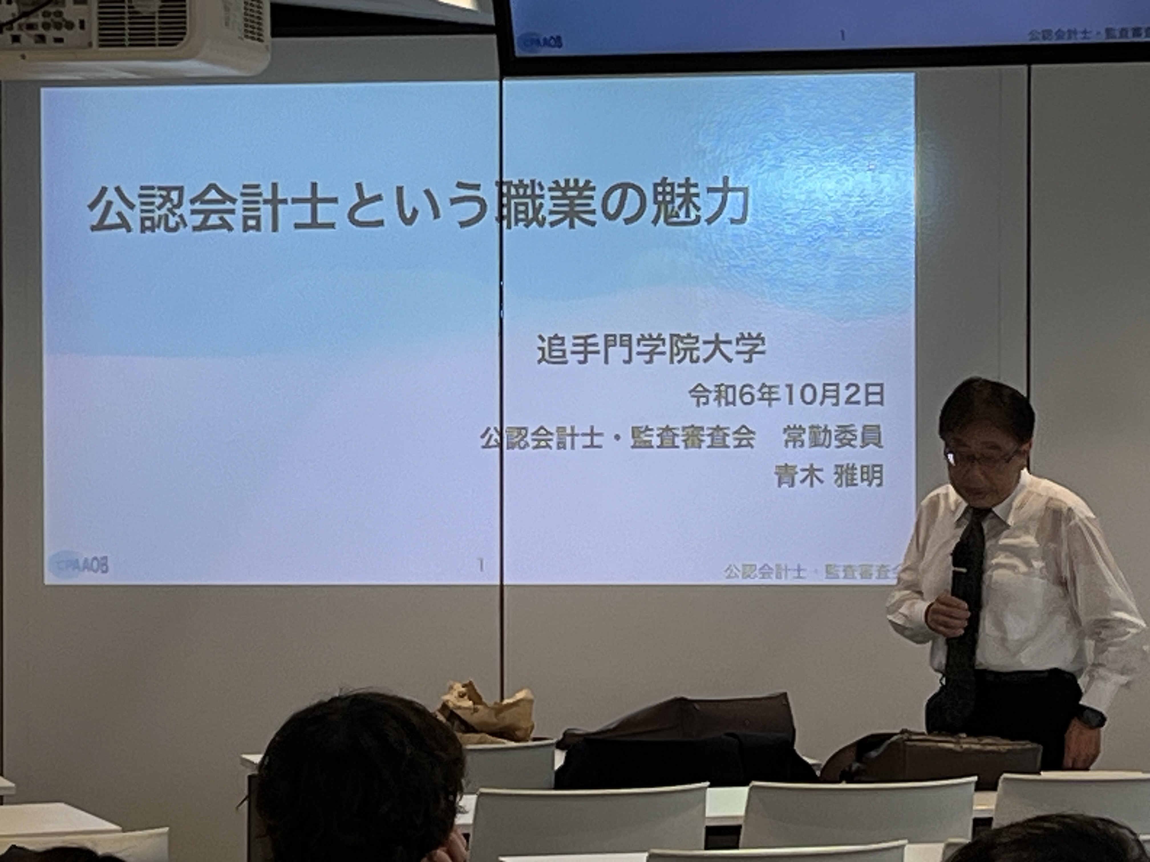 トップページ その他の情報 講演・寄稿等 令和6年の講演会等 講演等 追手門学院大学講演 令和6年10月2日、追手門学院大学において、青木委員が「公認会計士という職業の魅力」をテーマとして講演を行いました。 【講演資料】(PDF:3,775KB) サイトマップ 公認会計士・監査審査会ページ一覧を開きます 審査会について パンフレット 年次報告 審査会の開催状況 品質管理レビューの審査・検査ページ一覧を開きます 基本方針・基本計画等 検査結果等の取りまとめ 勧告 公認会計士試験ページ一覧を開きます 試験実施情報 令和8年試験について 令和7年試験について 過去の試験結果等 試験のバランス調整について 公認会計士試験Q&A 申請書様式等 公認会計士試験合格者等の方へ 公共サービス改革基本方針に基づく民間競争入札 その他の情報ページ一覧を開きます 国際関係 講演・寄稿等 パブリックコメント 公認会計士・監査審査会発足以前の情報 リンク集 採用情報ページ一覧を開きます 採用情報 審査検査課長からのメッセージ(PDF) 検査官からのメッセージ(1)(PDF) 検査官からのメッセージ(2)(PDF) Q&A(PDF) 情報公開等ページ一覧を開きます 情報公開 個人情報保護 ページの先頭に戻る