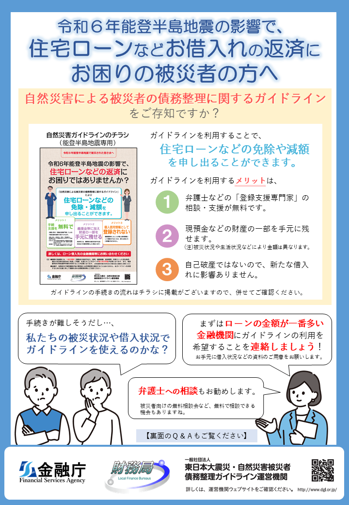 (Q&A)令和6年能登半島地震の影響で、住宅ローンなどのお借入れの返済にお困りの被災者の方へ