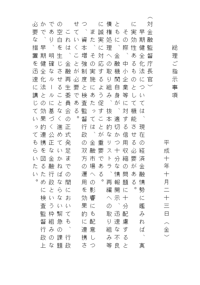 (2) 当庁としては、この内閣総理大臣のご指示を踏まえ、我が国金融システムの早期健