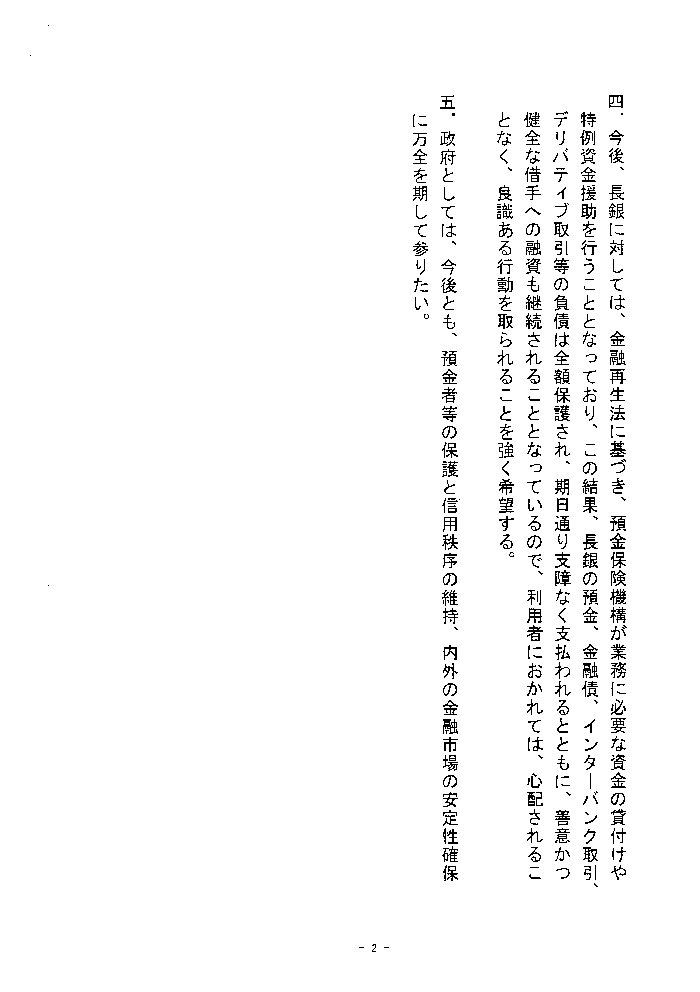 (2) 長銀の業務運営については今後も従前通り行われることになるが、資産劣化防止の