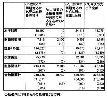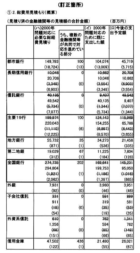 (1) 「コンピューター2000年問題対応に関する報告の集計表」 2.総費用見積もり(概算)