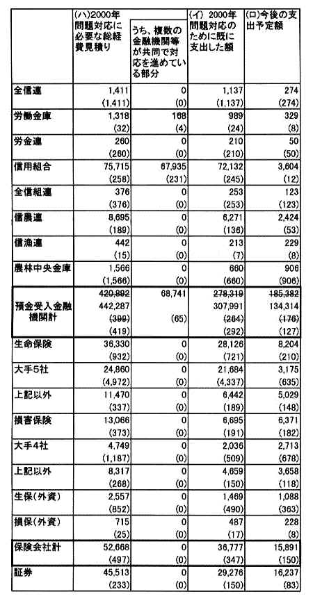 コンピューター2000年問題対応に関する報告の集計表等のデータの訂正について