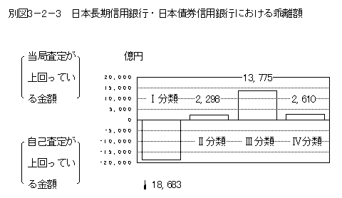 なお、日本長期信用銀行及び日本債券信用銀行については、 III 分類及び IV 分類の乖離が大きく、特に IV 分類の乖離額は17行の合計を上回っている(詳細については、第3章第7節を参照のこと。)。