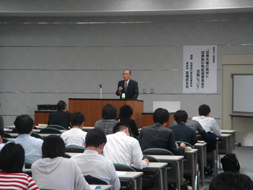 最後に、正確な情報開示のため発行企業における内部統制の重要性について説明するとともに、市場の仲介者である証券会社・証券取引所等が誠実・良心的に業務を遂行することの重要性について説明し、学生からは証券犯罪事件に関する質問がなされるなど盛況のうちに講演は終了しました。