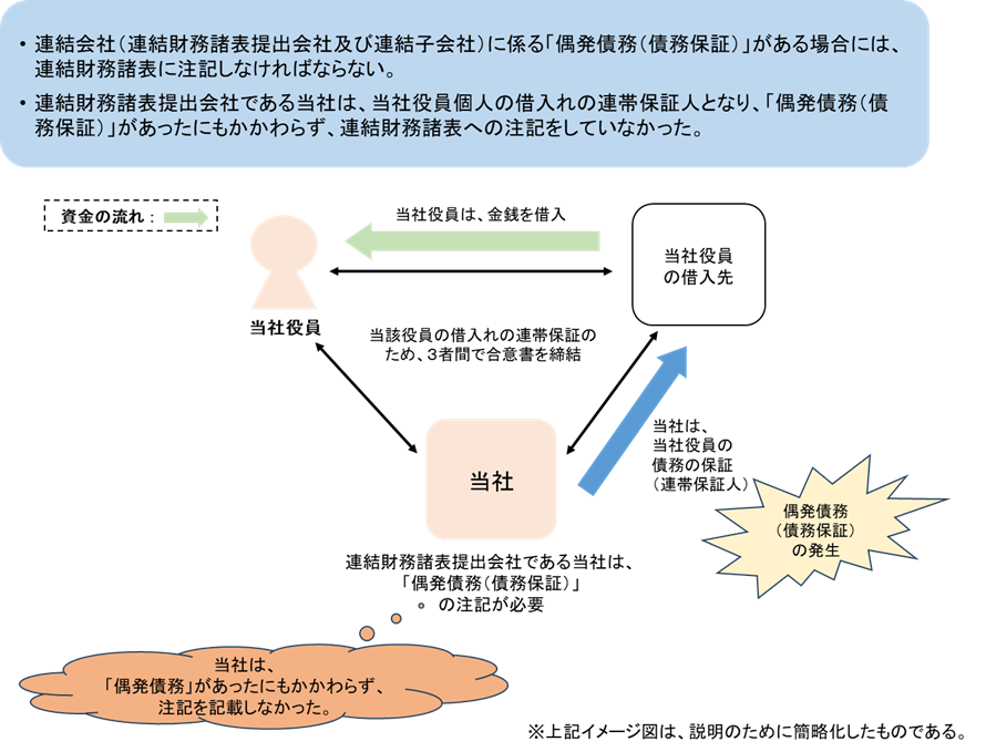 - 当社役員の個人借入の連帯保証に係る「偶発債務(債務保証)」としての注記